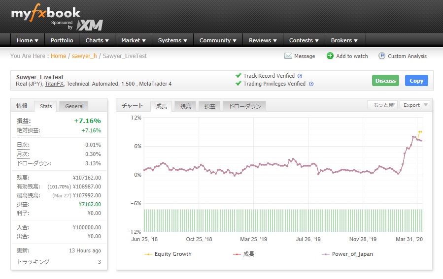 上記のリンクをクリックしサイトを開くと私の公開している口座の情報を見ることができます。こちらを使用して説明をしていきます。