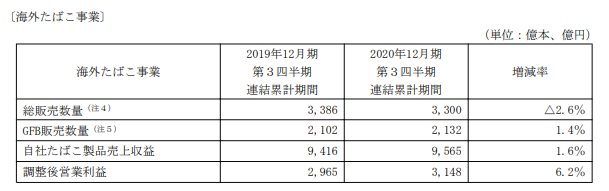 今回はJTの最新の四半期決算書(2020年7月~9月)を見ていきます。