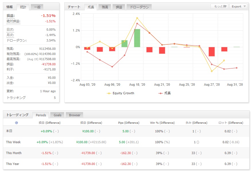 普段から公開しております、販売中のEAをすべて動かしておりますFX口座の成績は下記のようになりました。