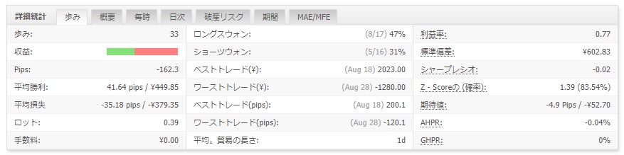 8月は目立った動きもなくトレンドフォローが中心となる当ストラテジーは引き続き厳しい運用状況となっております。