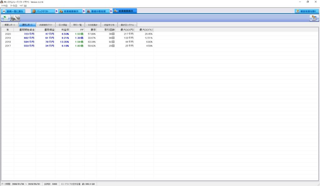 上記は通年レポートとなっております、概要レポートを年ごとに分けた成績となります。