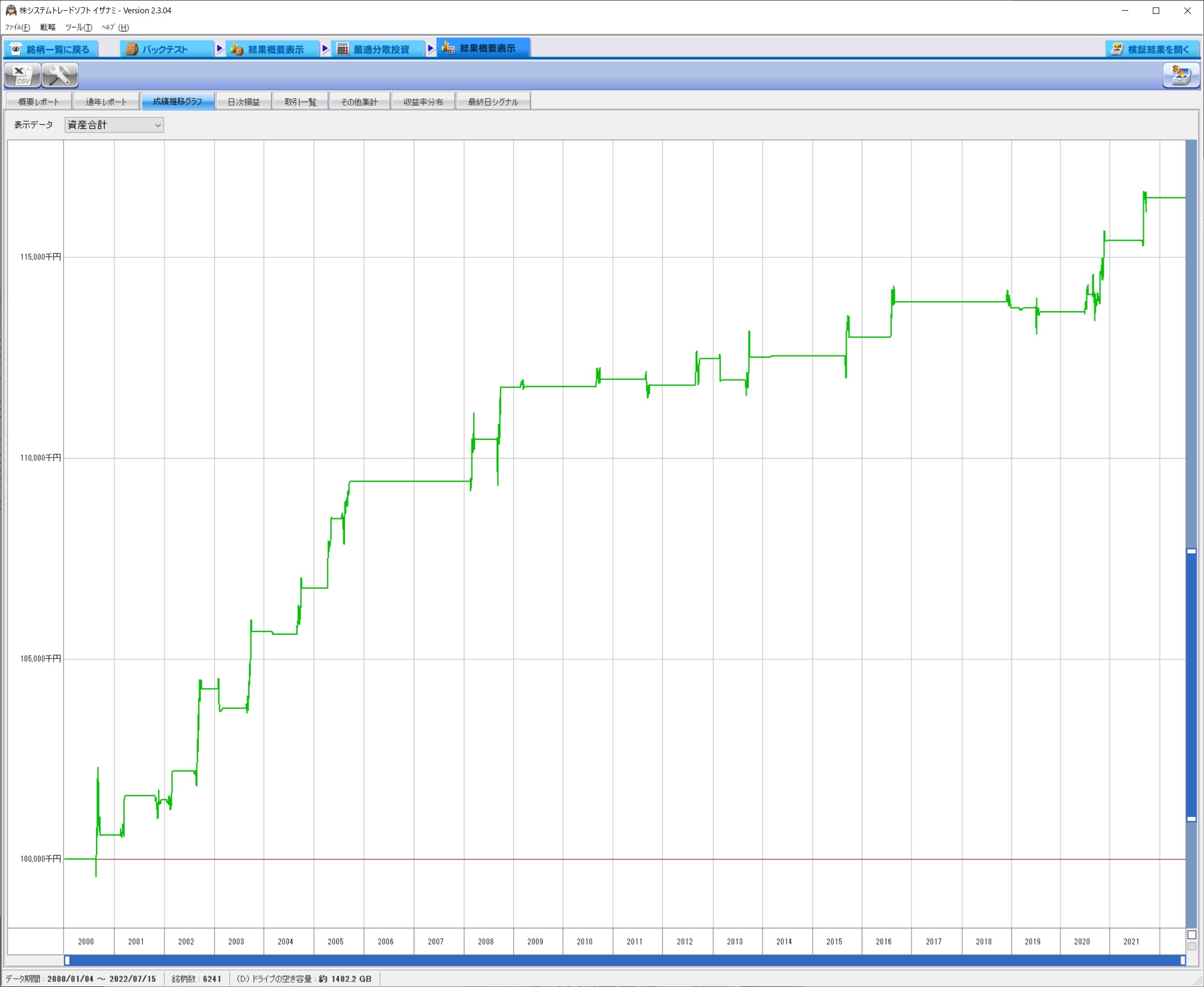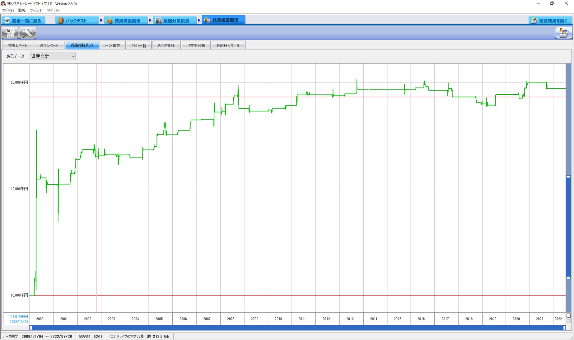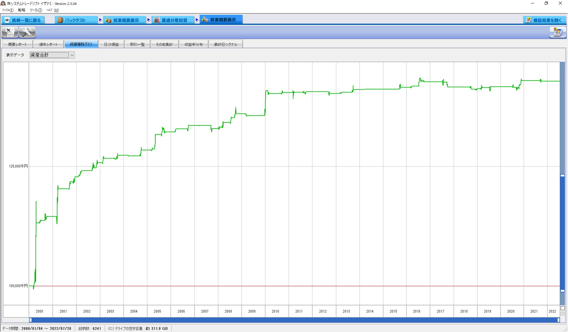 資産推移とそのグラフを上記に貼りましたが、負ける年こそありますが負け額は限定的です。